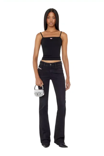 BRAND:DIESEL COLOUR:BLACK Bootcut style with a low waist and higher back coverage. This classic slim jean with a bohemien attitude