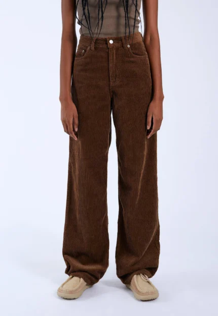 BRAND:DRDENIM COLOUR:BROWN Relaxed fit High waist Wide straight leg, slightly nipped in at hem Rigid (no stretch) corduroy fabric Classic