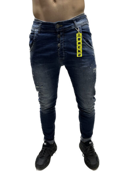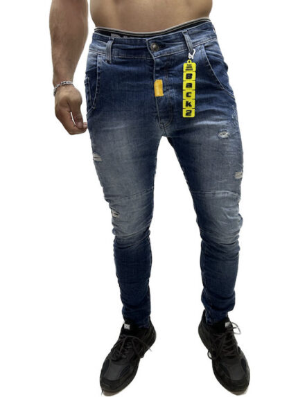 Brand:Back2jeans colour:blue jean  98%cotton 2%elastane Ανδρικό παντελόνι τζιν ελαστικό με σκασίματα και λάστιχο στο τελείωμα Mens jeans pants
