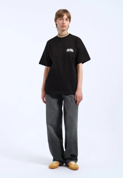 BRAND:DRDENIM COLOUR:BLACK UNISEX TEE Relaxed fit American 90’s cut Classic chain stitch across shoulders Retro open-end yarn, 230 gsm 100%