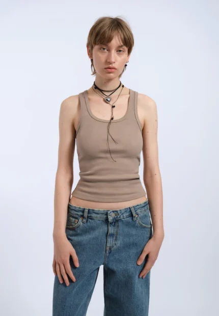 BRAND:dRDENIM COLOUR: LIGHT MOREL Slim fit Full length Scoop neck 2×2 rib stretch fabric, 380 gsm 95% Cotton, 5% Elastane