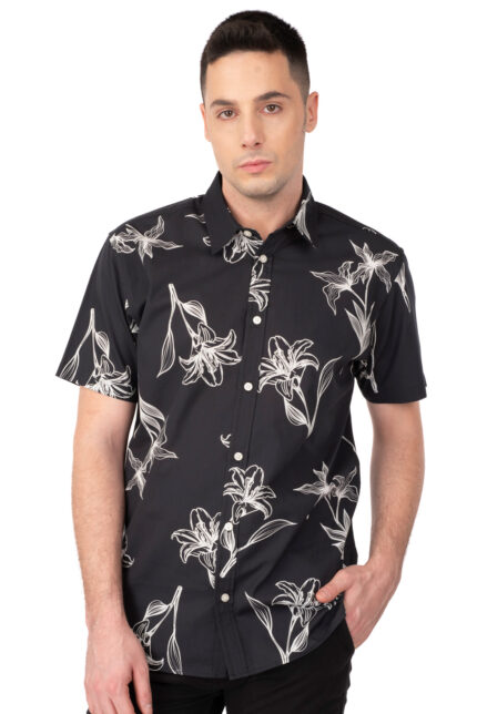 BRAND:REBASE COLOUR:BLACK FLORAL Men’s short sleeve shirt 100% Cotton