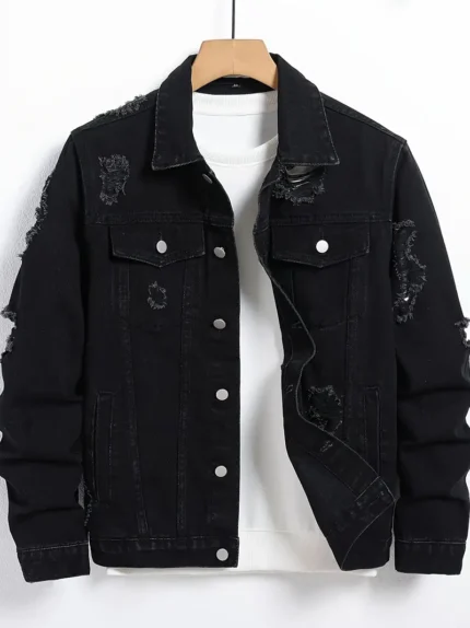 ΑΝΔΡΙΚΟ ΜΑΥΡΟ JEAN JACKET ΜΕ ΣΚΙΣΙΜΑΤΑ