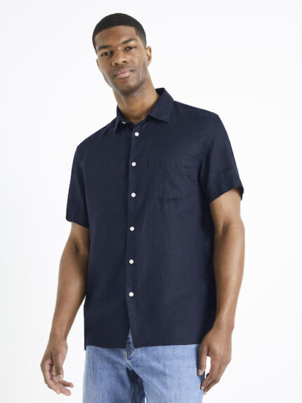 BRAND:CELIO COLOUR:BLUE NAVY Ανδρικό πουκάμισο της εταιρίας Celio σε navy μπλε χρώμα με κοντό μανίκι. • Κανονική Γραμμή 100% LINEN