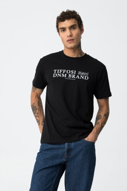 TIFFOSI MENS BLACK PRINTED COTTON T-SHIRT