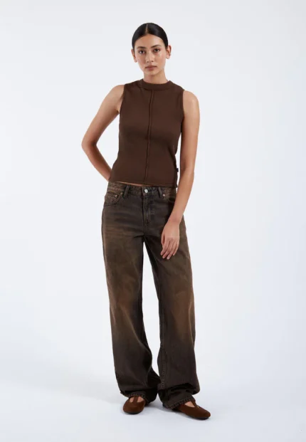 BRAND: DR DENIM COLOUR: BROWN USED Relaxed fit Low waist Wide straight leg, slightly nipped in at hem Classic 5-pocket
