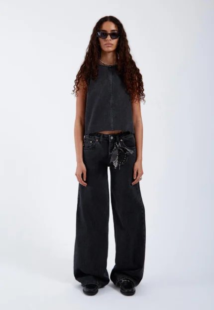 BRAND:DRDENIM COLOUR:RETRO BLACK Regular fit Low waist Slouchy flared leg Classic 5-pocket Zip fly Rigid (no stretch) denim fabric Made