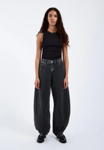 BRAND: DR DENIM COLOUR: AGED BLACK Relaxed fit Mid waist Barrel leg Classic 5-pocket Zip fly Rigid (no stretch) denim