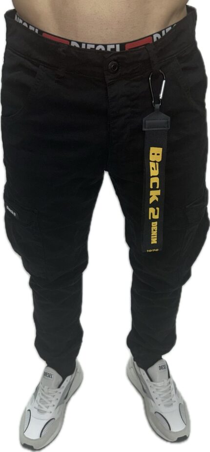 BACK2JEANS MENS CARGO COTTON PANTS BLACK