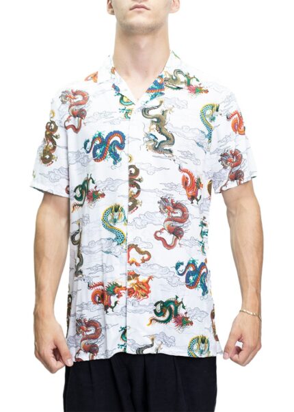TWIN BLACK MENS SHIRT WHITE DRAGONS 02-039W