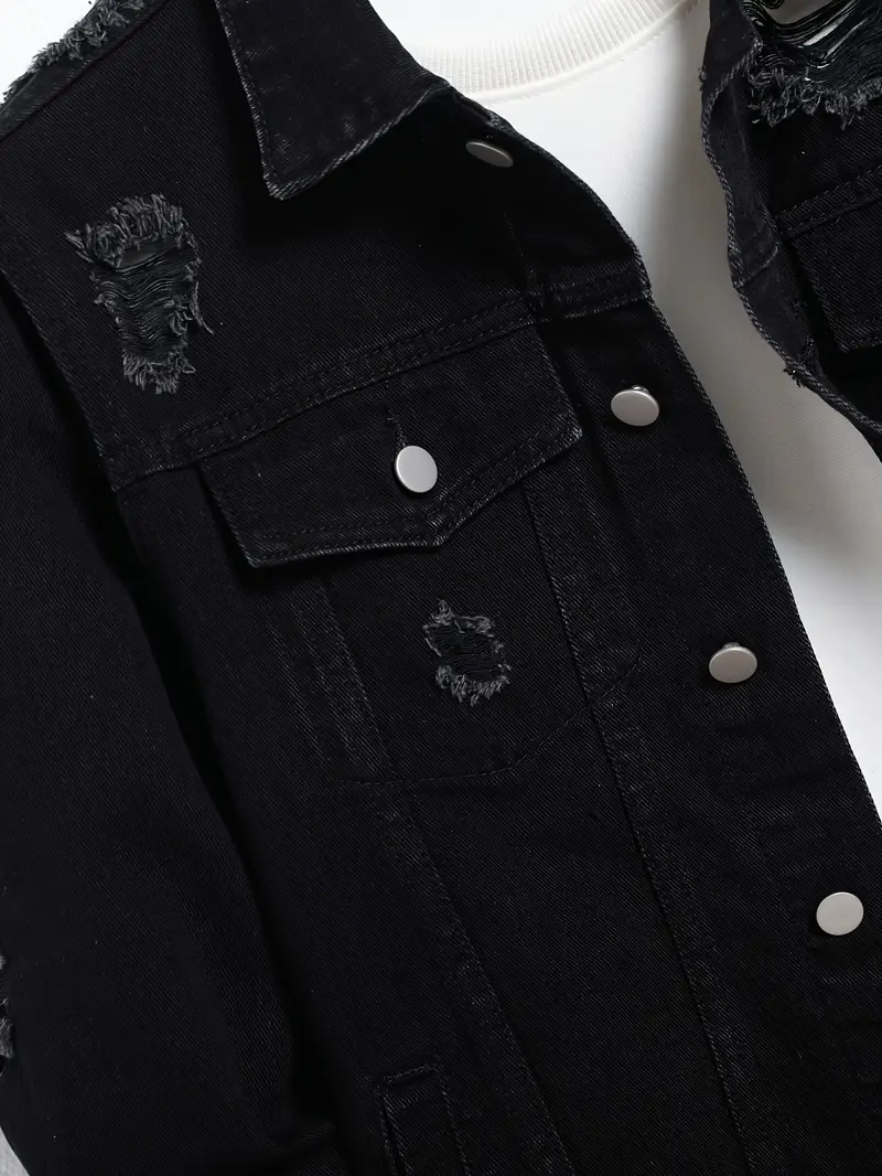 ΑΝΔΡΙΚΟ ΜΑΥΡΟ JEAN JACKET ΜΕ ΣΚΙΣΙΜΑΤΑ