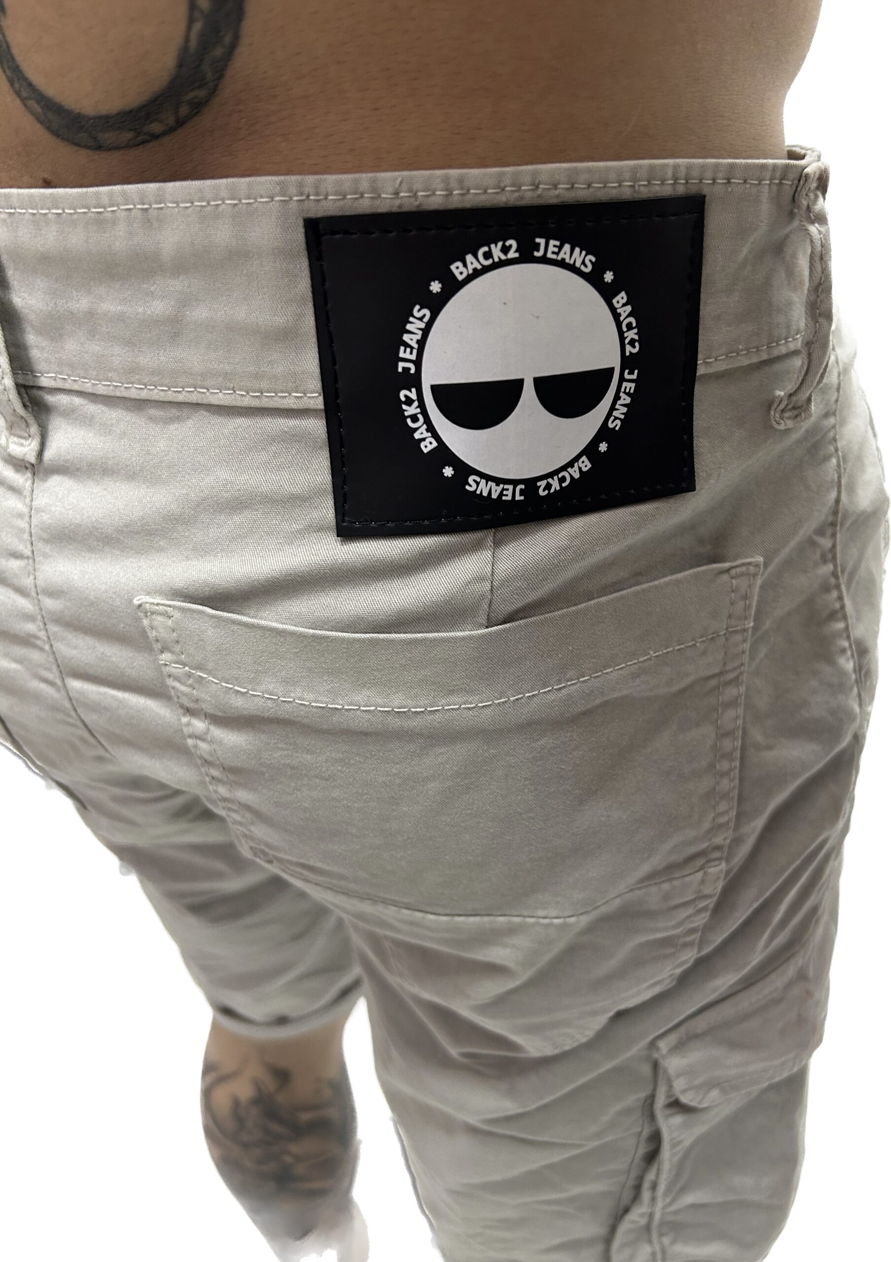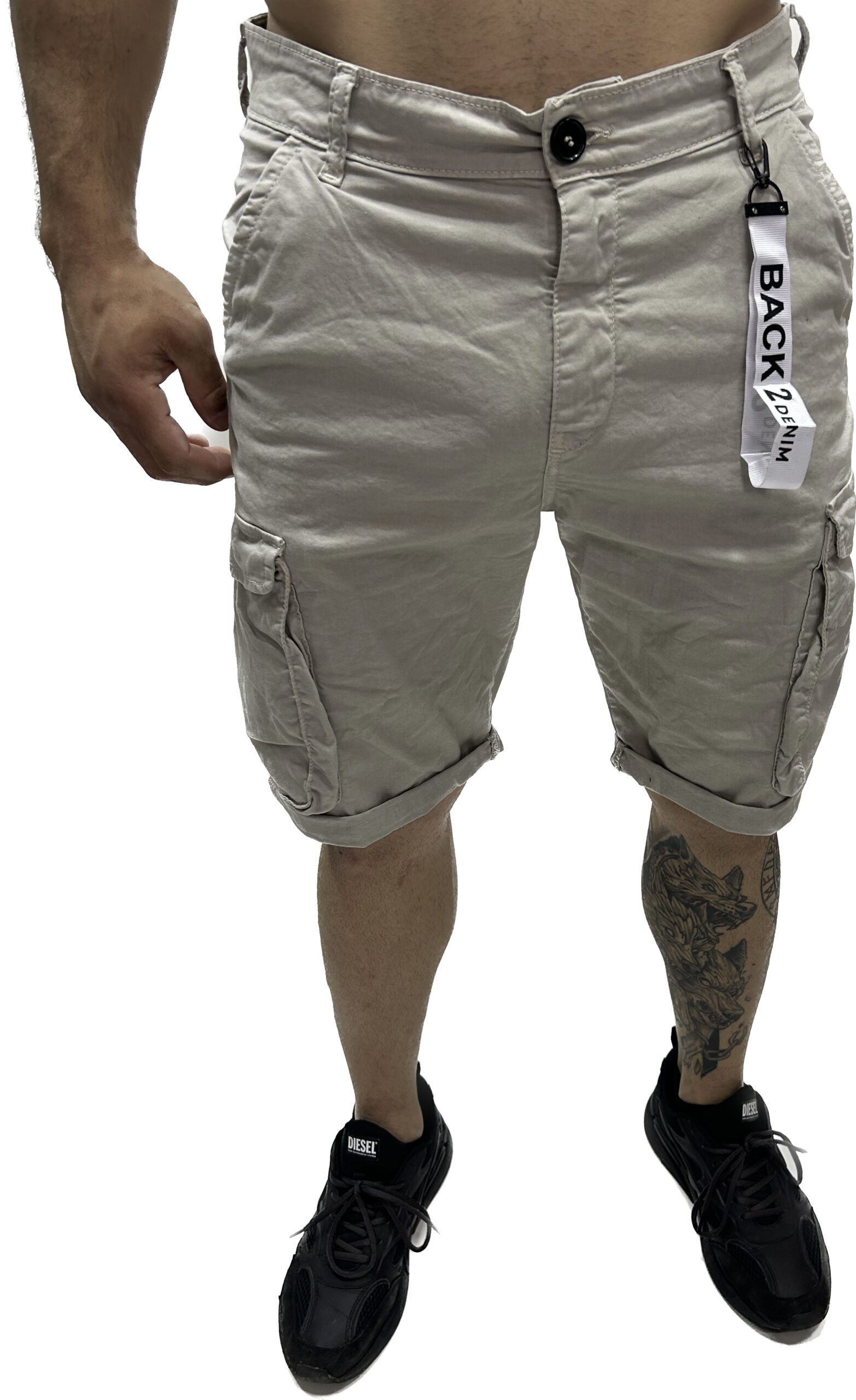 BACK2JEANS MENS COTTON CARGO SHORTS BEIGE