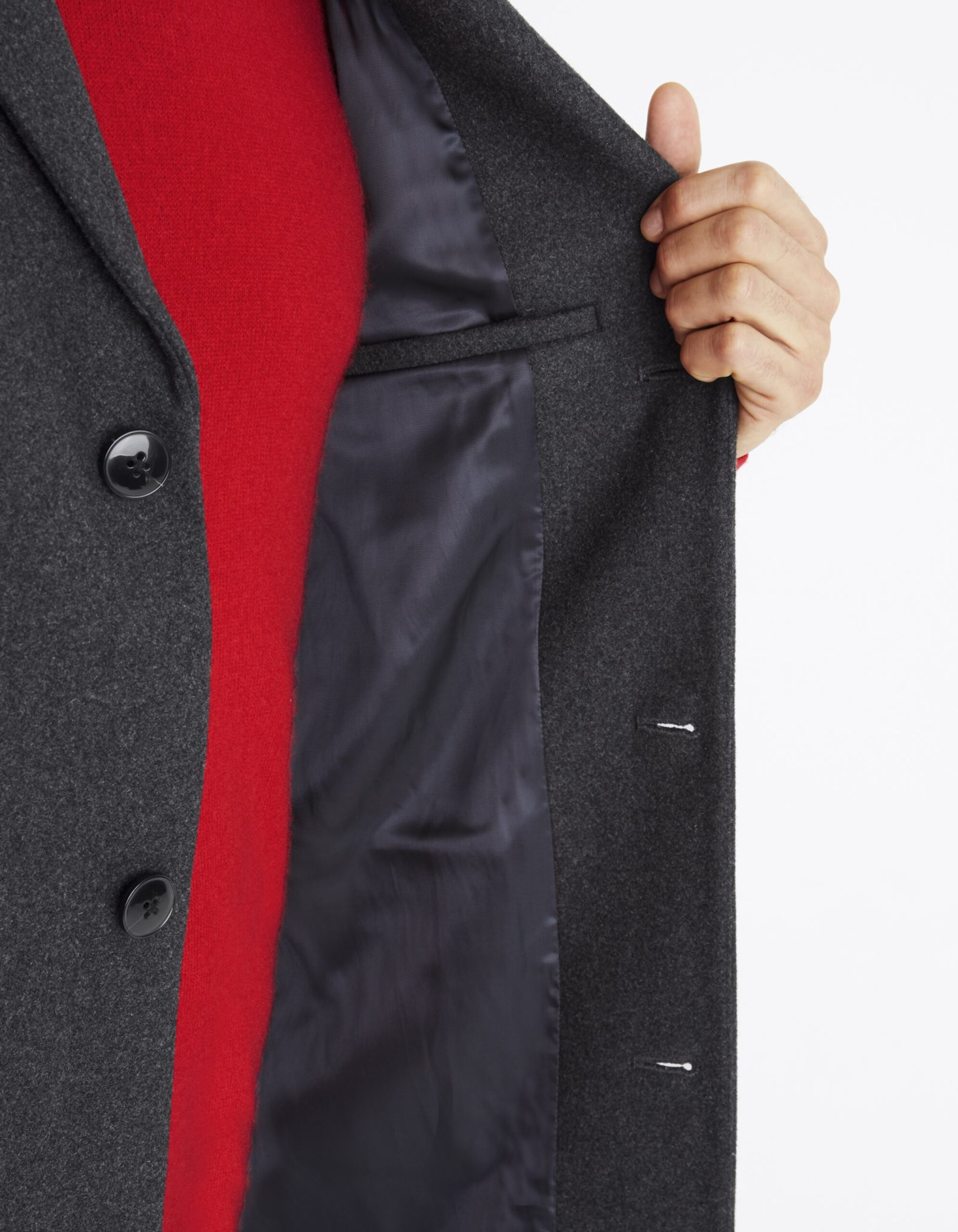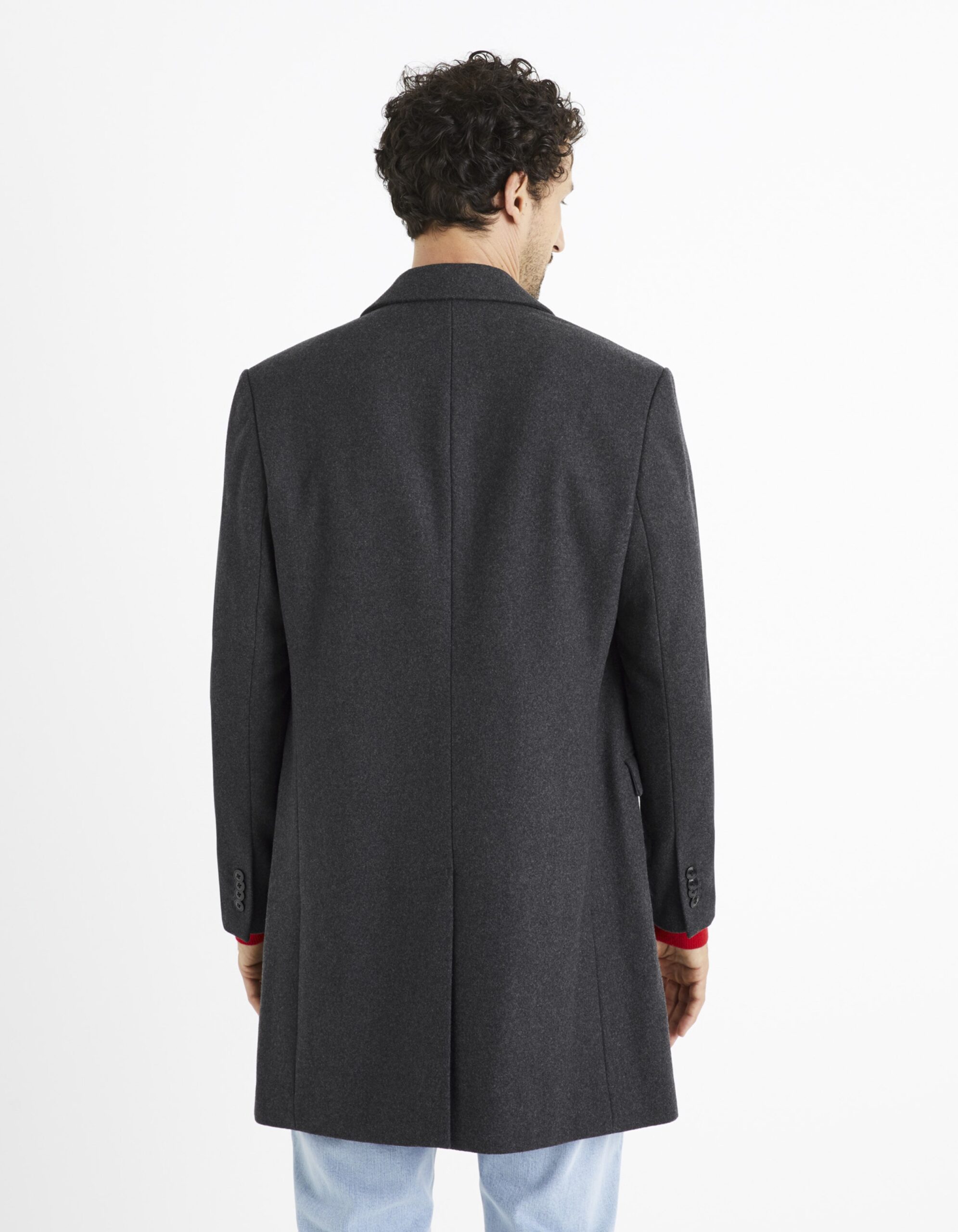 - Αυτό το ανδρικό παλτό θα είναι τέλειο για όλα τα κομψά και κομψά ντυσίματα του χειμώνα. Μπορεί έτσι να συνοδέψει πολύ καλά ένα κοστούμι για μια μέρα στη δουλειά ή μια εμφάνιση με casual chic πνεύμα, με chinos και πουκάμισο. Το υλικό του είναι κυρίως μαλλί για να εγγυάται ζεστασιά, ποιότητα και κομψότητα. Το παλτό κλείνει με τρία κουμπιά. Είναι διακοσμημένο με οδοντωτό γιακά και δύο τσέπες με πτερύγια στα πλάγια, καθώς και μια τσέπη στο στήθος.