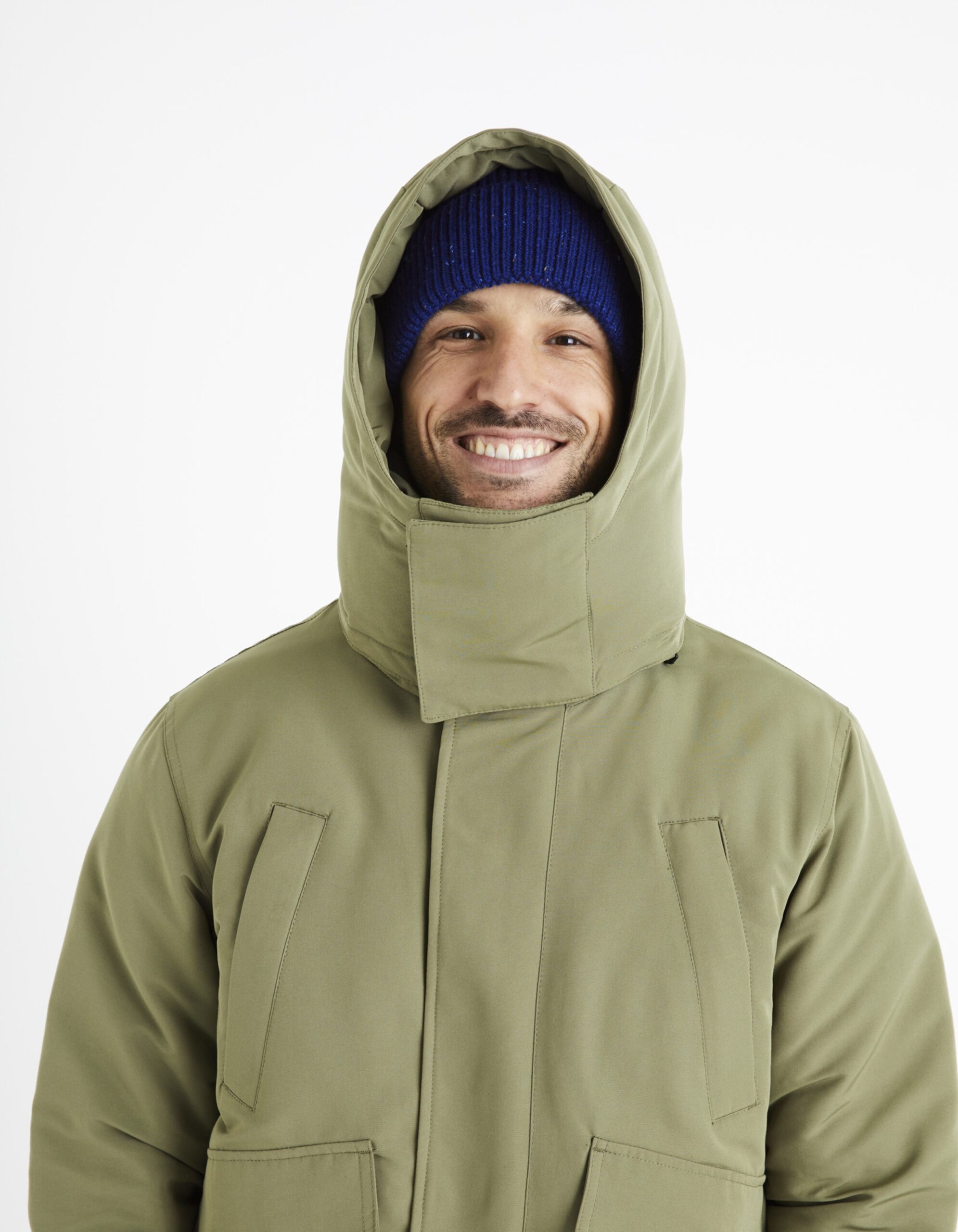- Αυτό είναι το ανδρικό σακάκι που χρειάζεστε για να αντιμετωπίσετε το κρύο. Είναι εξοπλισμένο με κουκούλα Velcro και όρθιο γιακά. Η φόδρα του είναι καπιτονέ με γέμιση από ανακυκλωμένο πολυεστέρα. Διαθέτει επίσης πολλές τσέπες και κλείσιμο που συνδυάζει φερμουάρ και velcro. Το ύφασμά του είναι επίσης αδιάβροχο για να αντιστέκεται στη βροχή. Τέλος, το κάτω μέρος του σώματος και τα μανίκια Velcro σφίγγονται με νευρώσεις. Θα συνοδεύσει όλες τις casual εμφανίσεις σας, φορεμένο πάνω από τζιν ή chinos.