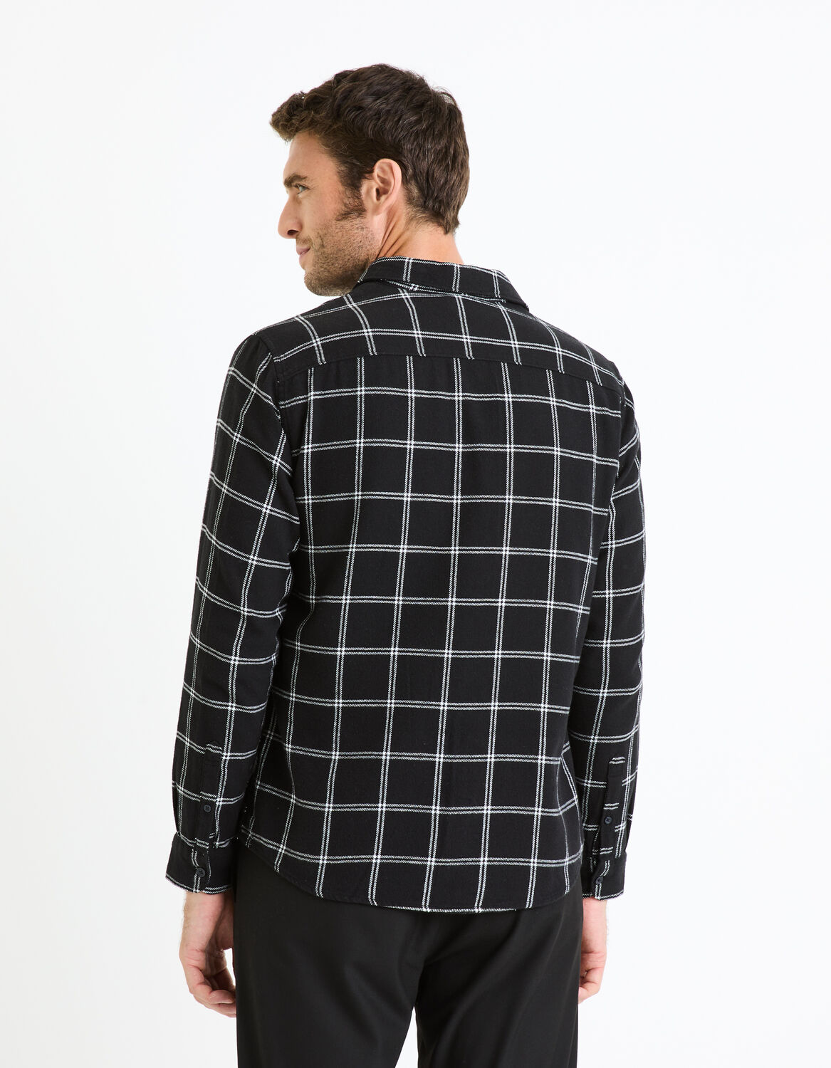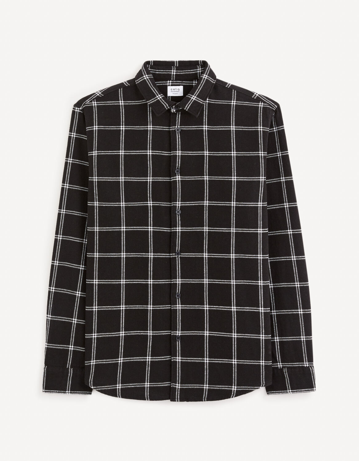 - Με το κανονικό του κόψιμο, αυτό το φανελένιο πουκάμισο είναι απαραίτητο στοιχείο στην ανδρική γκαρνταρόμπα. Αυτό το ανδρικό μοντέλο διαθέτει μακριά μανίκια, γαλλικό γιακά και κλείσιμο με κουμπιά. Κατασκευασμένο από βαμβάκι, ξεχωρίζει με το καρό του στάμπα.