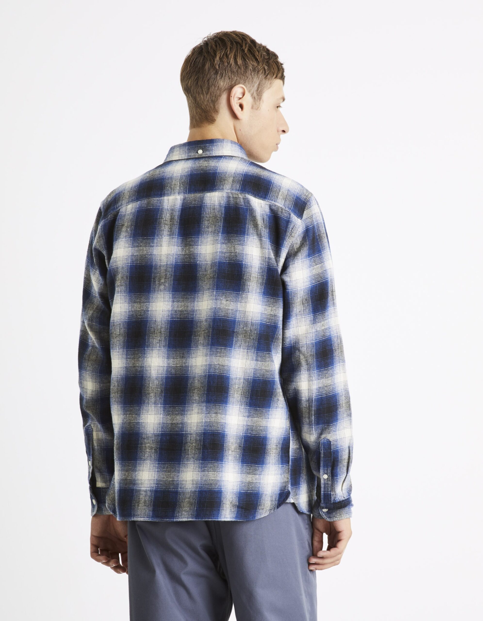 • Το καρό πουκάμισο για άντρες είναι ένα ρούχο που ταιριάζει ιδιαίτερα με τζιν και chinos, για να δημιουργήσει μια δροσερή και χαλαρή εμφάνιση. Αυτό το πουκάμισο είναι κατασκευασμένο από 100% βαμβακερή φανέλα και έχει μακριά μανίκια.