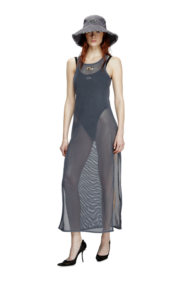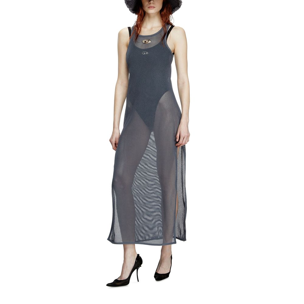 - Women’s maxi dress with generous side slits and a sporty racer back. Ideal over your one-piece or bikini, this sheer mesh style is made from stretch-enriched organic cotton, ensuring an easy, flexible fit. The cut-out plaque-like Oval D logo on the chest adds a touch of chrome shine.