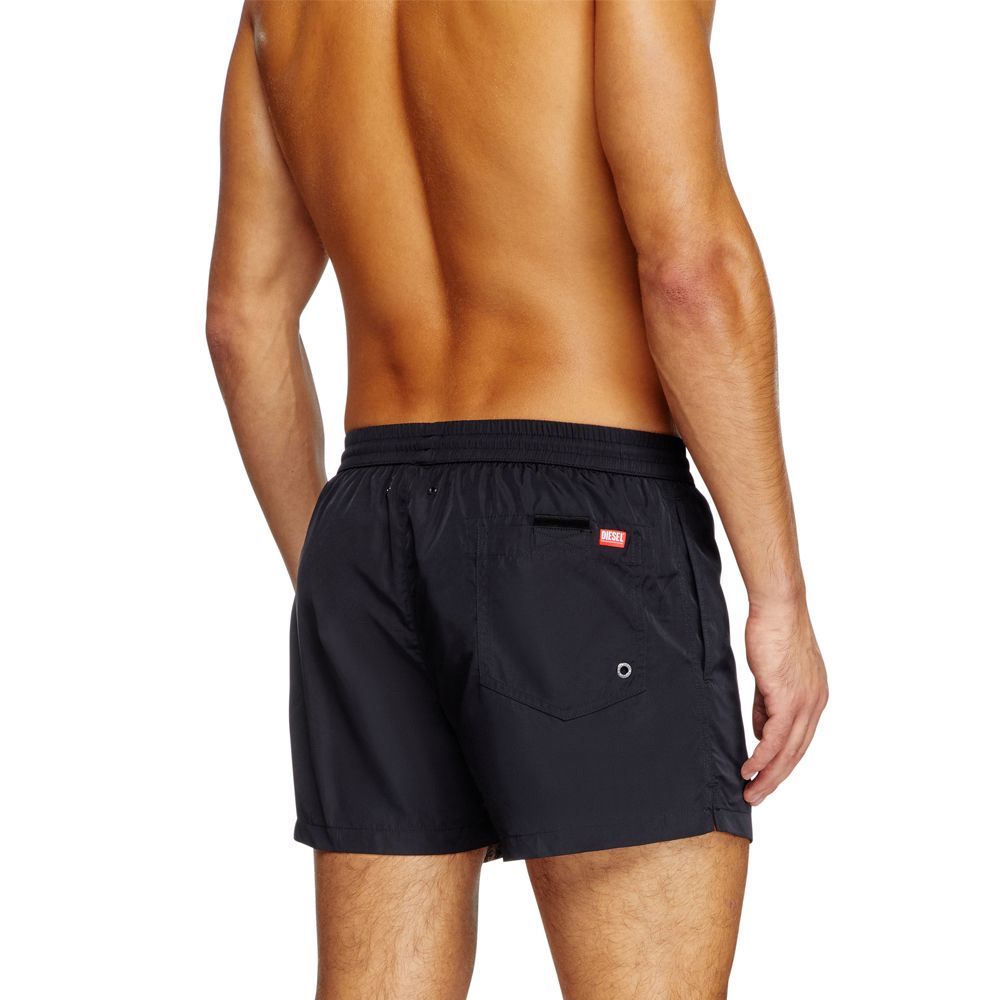 Men’s swim trunks in recycled quick-dry fabric, emblazoned on the leg with the Diesel For Successful Living logo print. This short pair has a trio of pockets and a comfortable waistband adjustable with a drawstring.