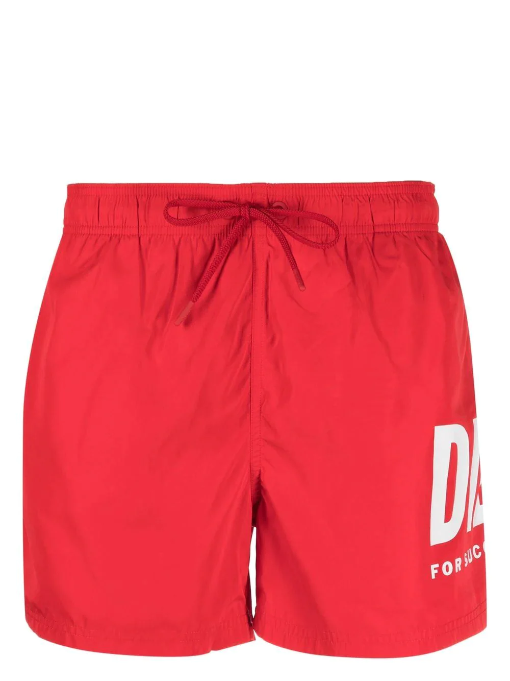 DIESEL MENS SWIMWEAR BLACK BMBX-NICO MAN MID-LENGTH SWIM-SHORT RED
