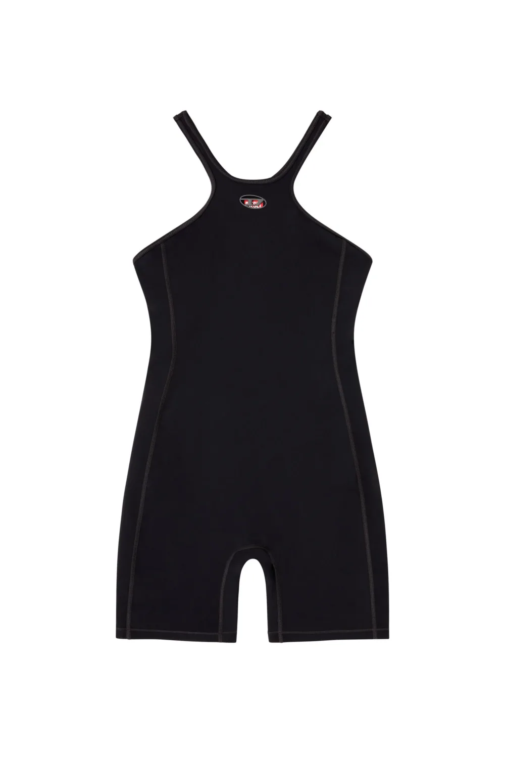 - With a racer back and high neck, this women’s playsuit gently hugs the silhouette. The smooth fabric wicks away sweat and hugs whilst allowing flexibility of movement; a cut-out Oval D completes the design.