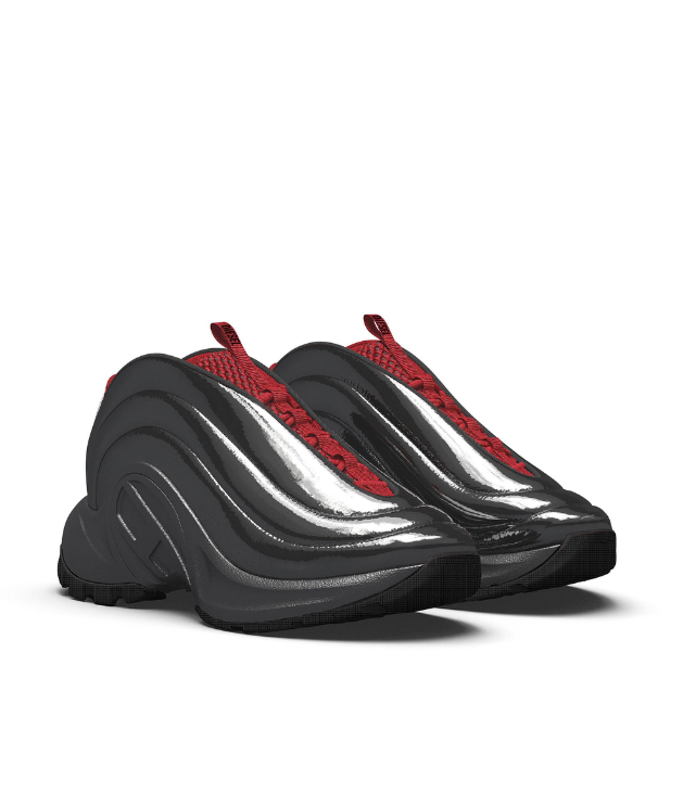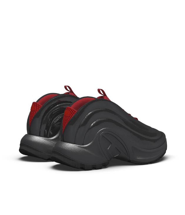- Designed for all genders, this shiny ridged trainer flaunts a statement arched silhouette. Its slip-on design features a mesh tongue insert with elasticated cross-cross laces. Set on a rubber running sole with an Oval D wrapping around the instep.