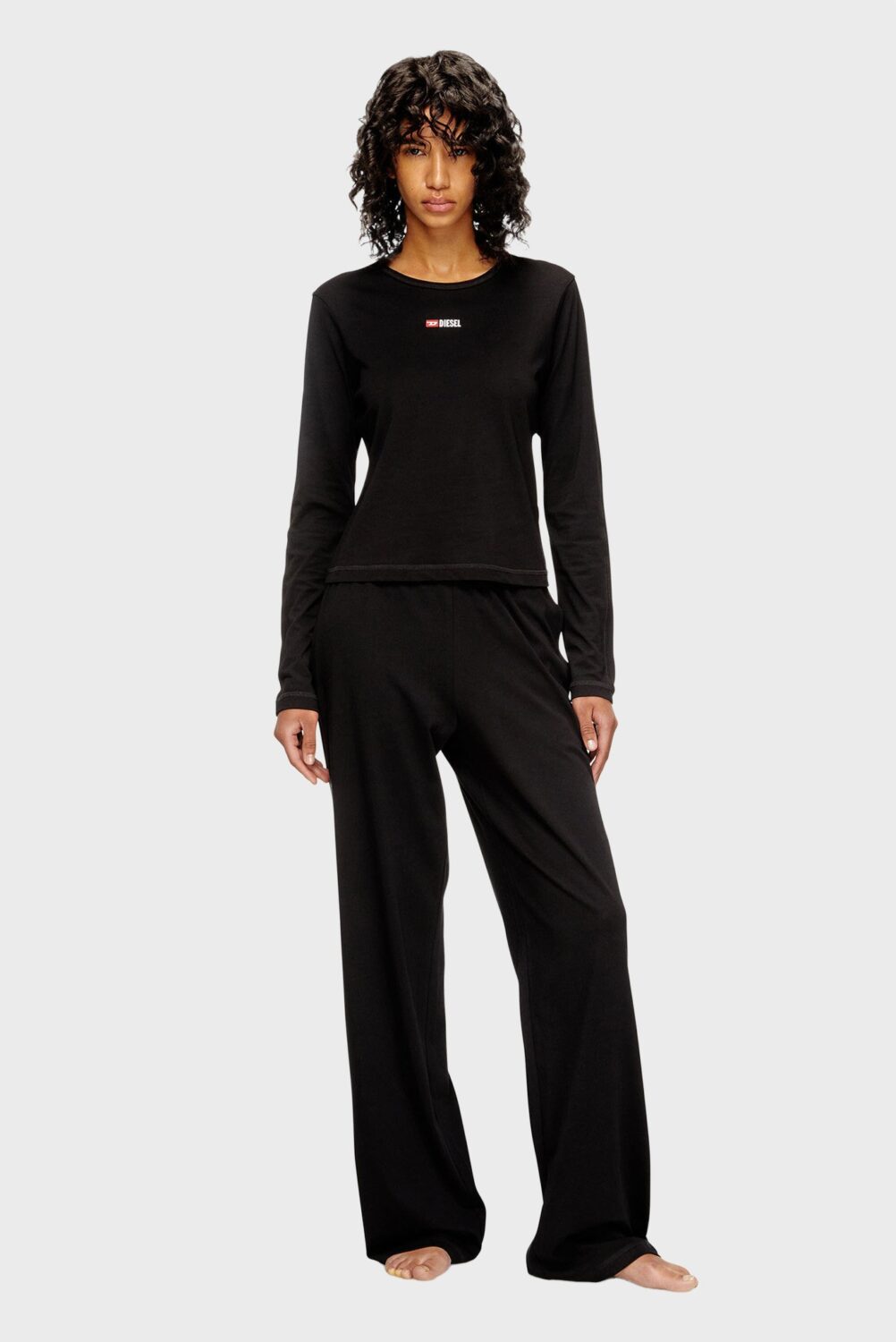 - GILDA-D-CORE logo pajama by Diesel is the quintessence of sophisticated comfort, perfectly combining classic elegance with the highest quality craftsmanship. This two-piece set – consisting of a fitted long-sleeved top and relaxed pants – captivates with its simple cut and solid black color, giving it a timeless character.