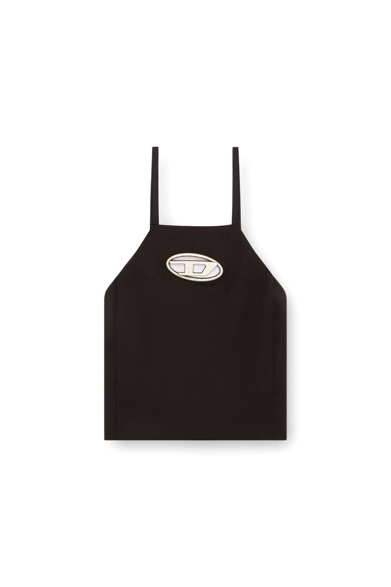 - This women’s strappy top is cut from black cool wool twill, spun with a hint of stretch for a close fit. Its backless design is secured with a single elasticated strap for a barely-there look. A metal Oval D plaque fills the chest cut-out.