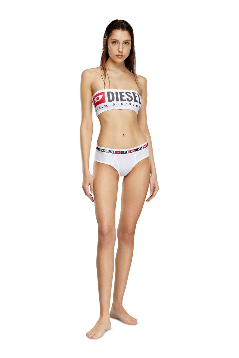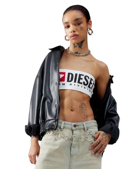 - Women’s bandeau bra made from soft stretch cotton. Secured with a slim elasticated band, this white style is emblazoned with a maxi Diesel Denim Division print across the front.By buying cotton products from Diesel, you’re supporting responsible cotton production through Better Cotton”.