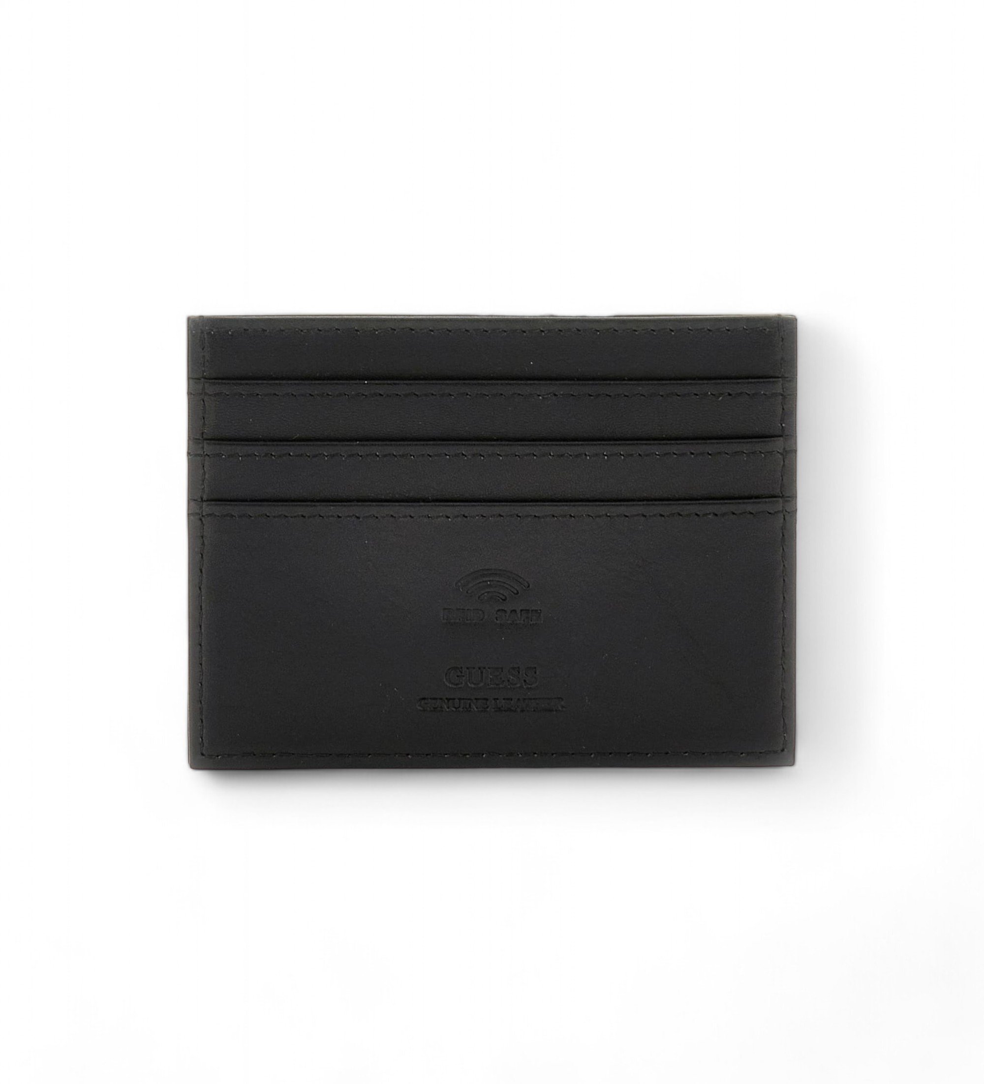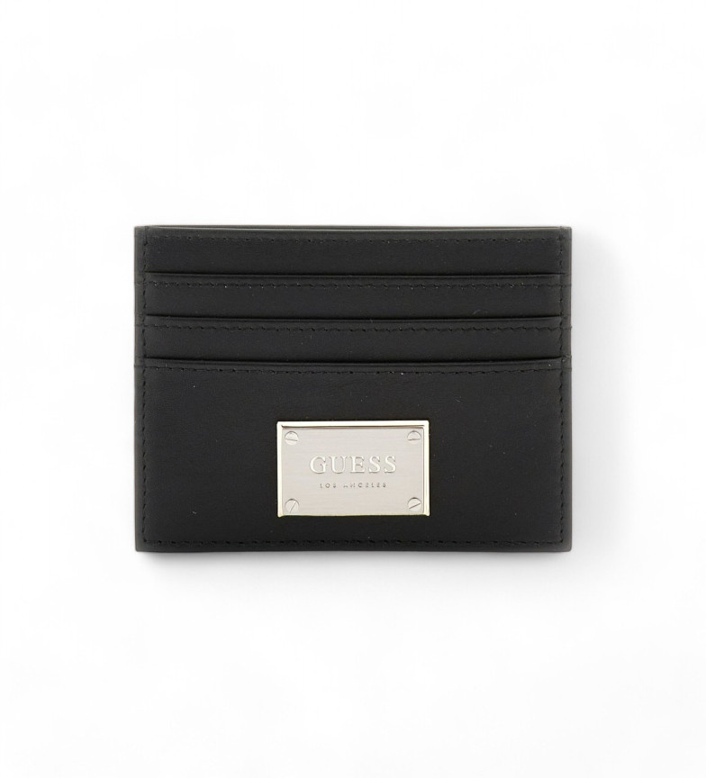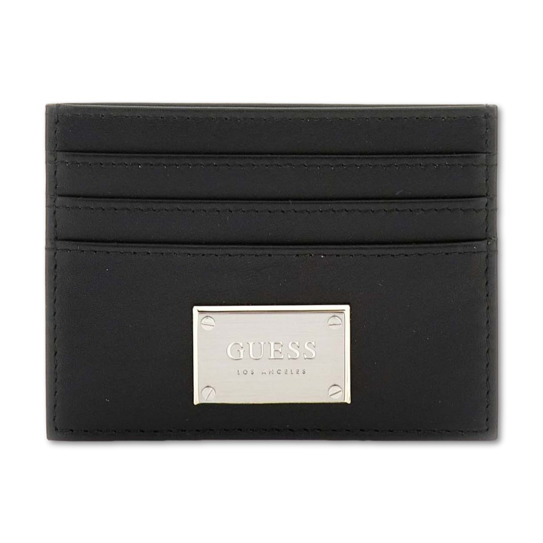 GUESS LEATHER CARD HOLDER METAL PLATE BLACK