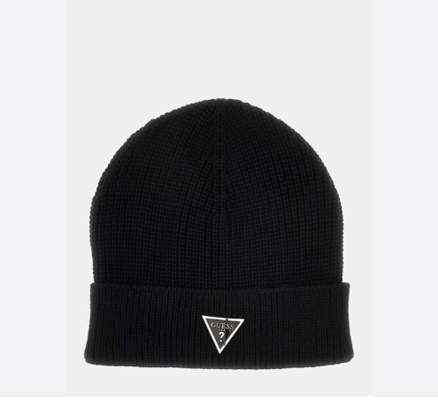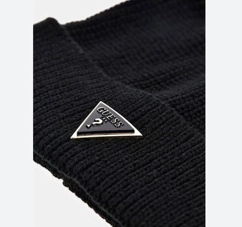 GUESS MENS BEANIE BLACK WITH TRIANGLE LOGO