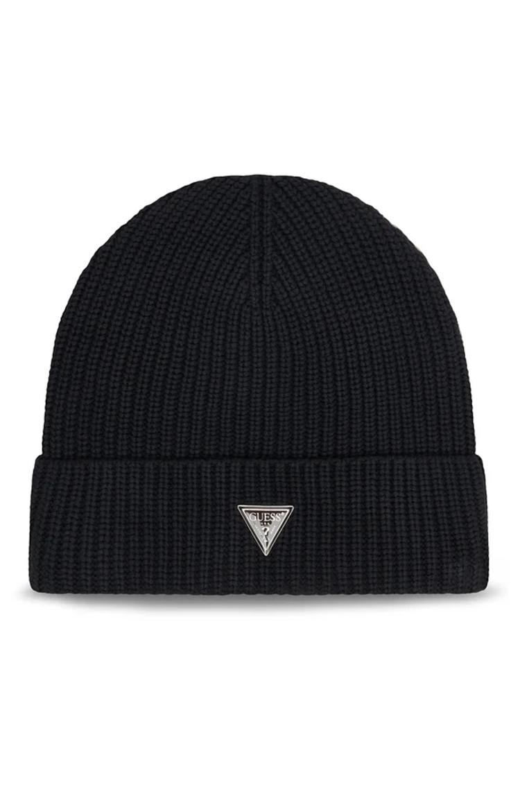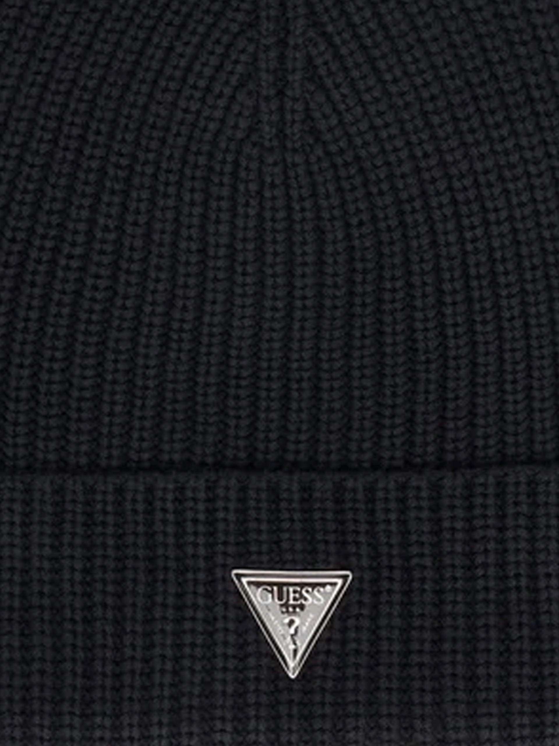GUESS MENS BEANIE BLACK WITH TRIANGLE LOGO