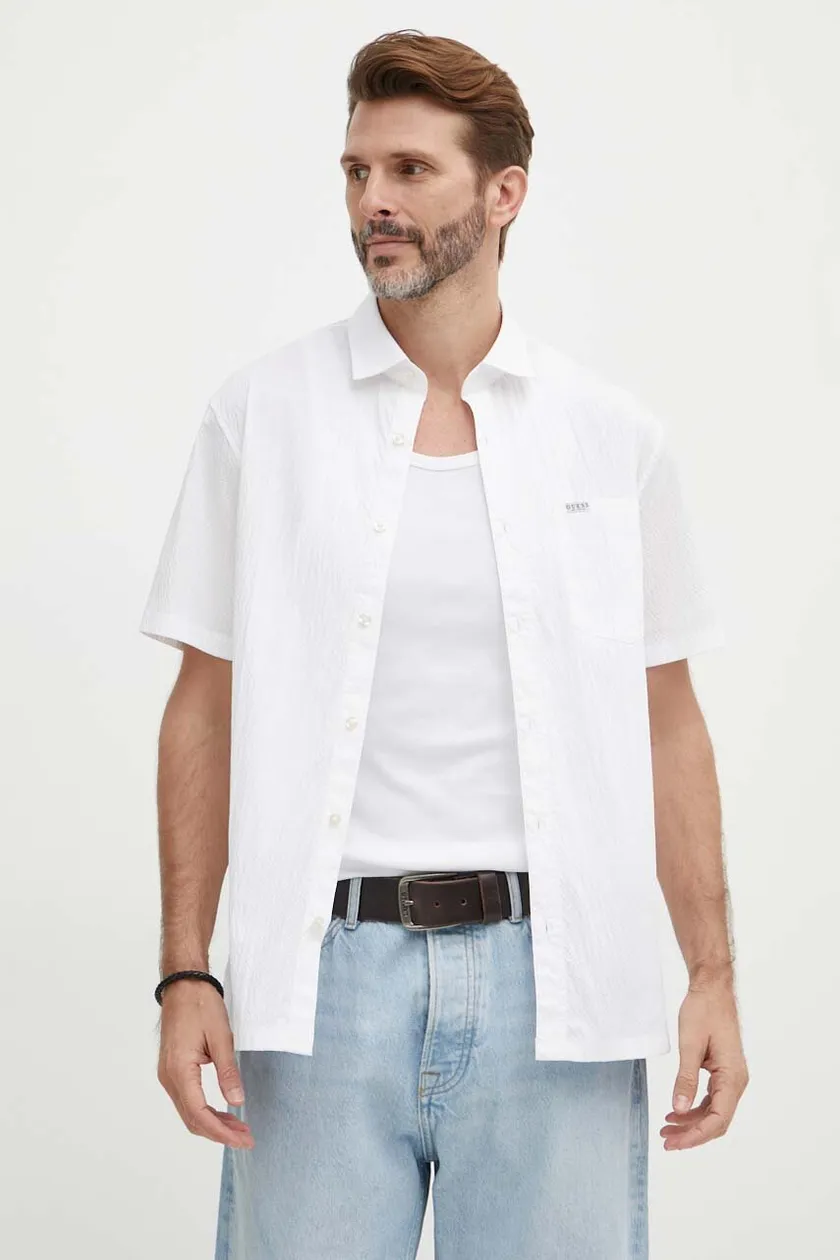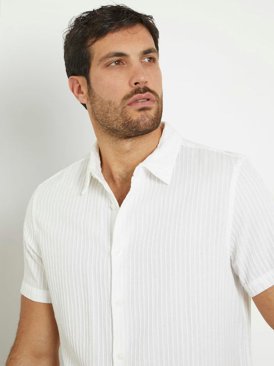 GUESS MENS SHIRT WHITE STRIPES SHORTSLEEVES