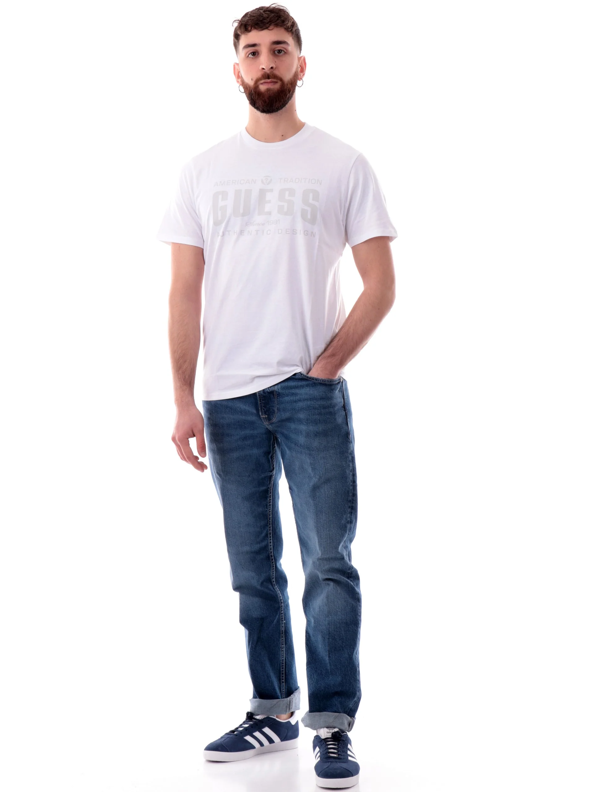 GUESS MENS T-SHIRT LOGO WHITE