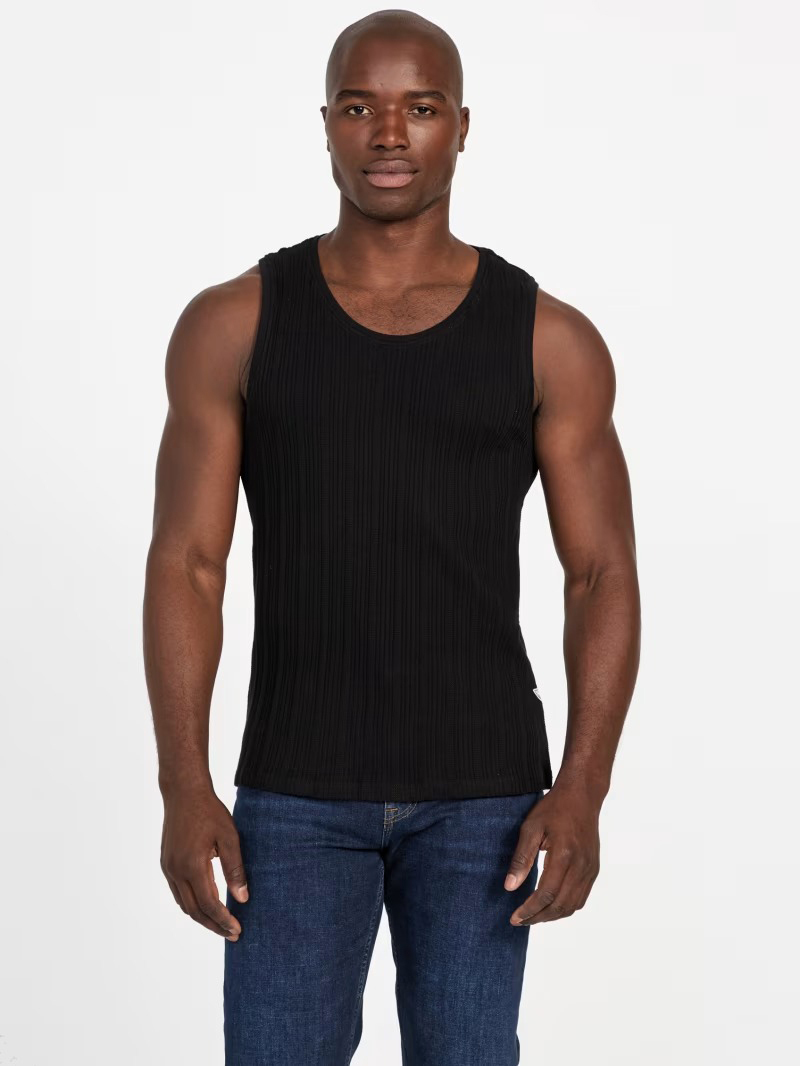 GUESS MENS T-SHIRT SLEEVELESS LOOSE KNIT BLACK