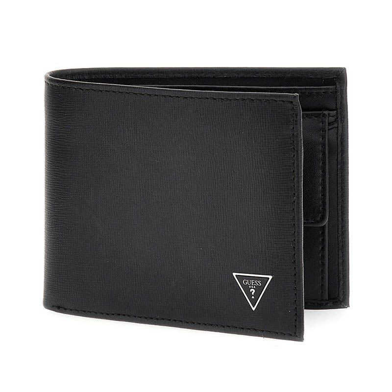 - Πορτοφόλι από γνήσιο δερμα , με πολλαπλές θήκες για κάρτες & μια κερματοθήκη με φερμουάρ. Μεταλλικό logo Guess μπροστά.