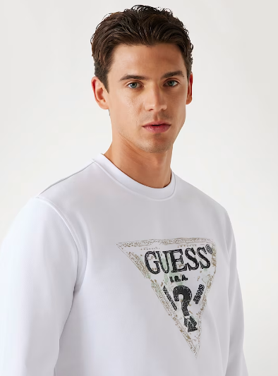 GUESS SWEATER WHITE WITH TRIANGLE LOGO
