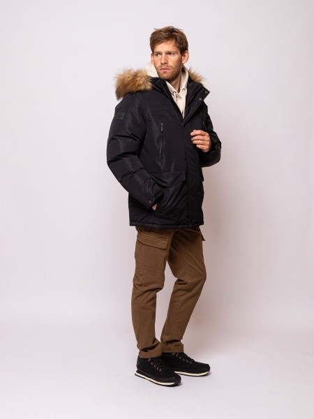 - In this men’s winter coat, you’re sure to stay warm! The outer layer is moderately water-repellent, while the lining and padding ensure a comfortable feeling of warmth. Both the front and inside windbreaks keep the sharp winds away, the hood is adjustable, as is the bottom of the jacket. The hood is finished with a removable faux fur trim for an even more fashionable look. The sleeve bottom has a ribbed cuff and patent adjustment to keep out the cold. Large pockets and an inner pocket keep your valuables safe. Small branding on sleeve. Its trendy colours will make it an essential piece of your winter wardrobe! Wear it with your favourite Heavy Tools winter outfit and conquer the city, nature or just the grey cold weekdays! Material: shell: 100% polyester, lining: quilted, 100% nylon, padding: 100% polyester.