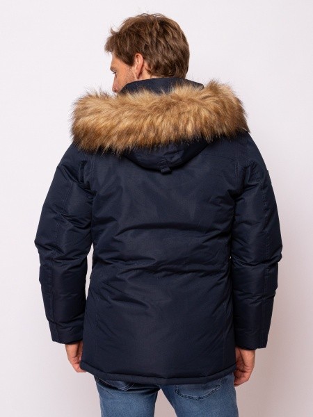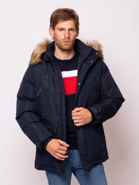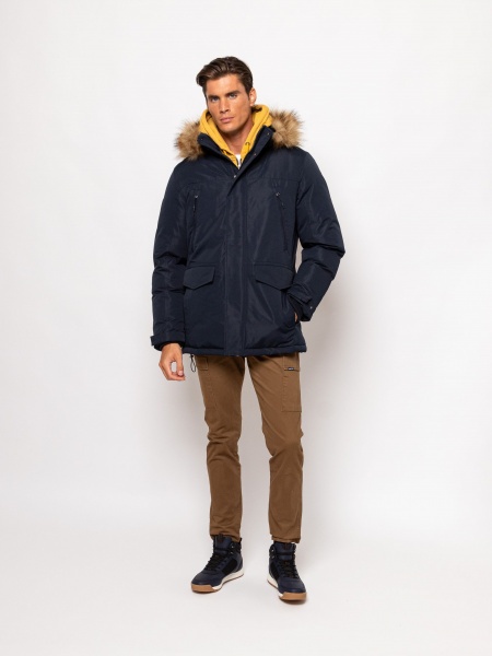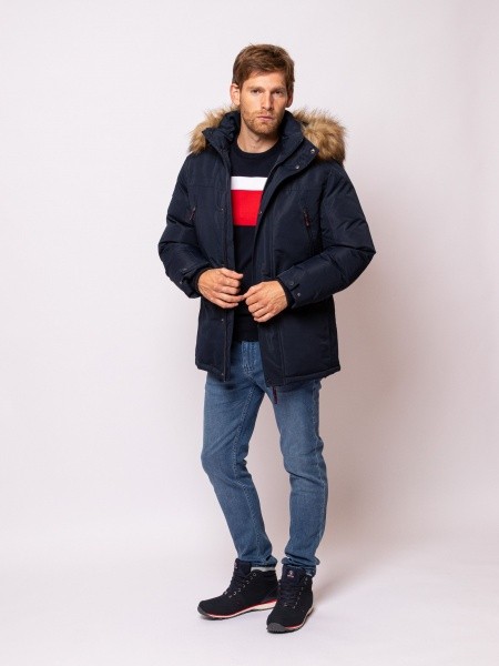 - In this men’s winter coat, you’re sure to stay warm! The outer layer is moderately water-repellent, while the lining and padding ensure a comfortable feeling of warmth. Both the front and inside windbreaks keep the sharp winds away, the hood is adjustable, as is the bottom of the jacket. The hood is finished with a removable faux fur trim for an even more fashionable look. The sleeve bottom has a ribbed cuff and patent adjustment to keep out the cold. Large pockets and an inner pocket keep your valuables safe. Small branding on sleeve. Its trendy colours will make it an essential piece of your winter wardrobe! Wear it with your favourite Heavy Tools winter outfit and conquer the city, nature or just the grey cold weekdays! Material: shell: 100% polyester, lining: quilted, 100% nylon, padding: 100% polyester.