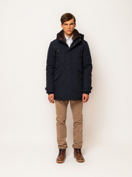 - You’re sure to stay warm in this men’s street chic winter coat! Its outer layer is moderately water-repellent, while its lining and padding ensure a comfortable feeling of warmth. Inside and out, a windbreaker keeps out biting winds. Its hood is adjustable and detachable, its collar is adorned with a detachable short fur inner collar, and its sleeve bottom has a lycra cuff and a patent adjustment to keep out the cold. Large pockets with flap, zipped pockets and an inside pocket keep your valuables safe. Small branding on sleeve. With its classic, basic colours, it will be an essential piece of your winter wardrobe! Material: shell: 100% polyester, soft shell, lining: quilted, 100% polyester, padding: 100% polyester.