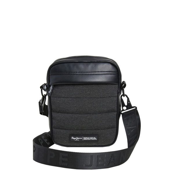 - Τσάντα crossbody, από συνδυασμό υλικών και δέρματος, με ένα κύριο διαμέρισμα και μια εσωτερική τσέπη που κλείνουν με φερμουάρ. Μια τσέπη μπροστά με φερμουάρ, μια τσέπη στο πίσω μέρος & ρυθμιζόμενος και αποσπώμενος ιμάντας ώμου με jacquard logo. Rubber ετικέτα logo Pepe Jeans μπροστά και ετικέτα logo στο πίσω μέρος.