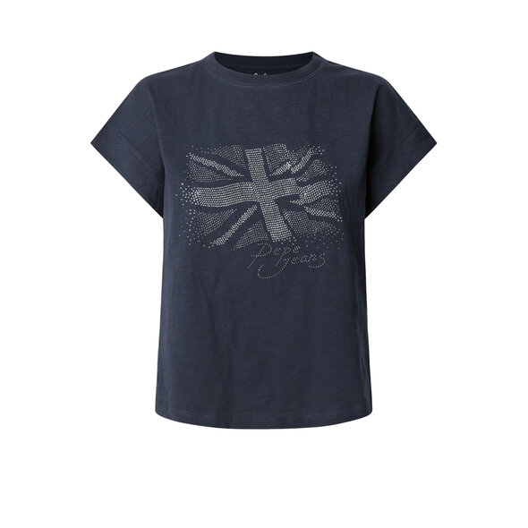 - Μπλούζα κοντομάνικη, με στρογγυλή λαιμόκοψη, flag logo και logo Pepe Jeans μπροστά με πούλιες.
