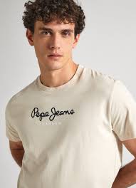 PEPE JEANS T-SHIRT MENS EGGO LOGO BEIGE