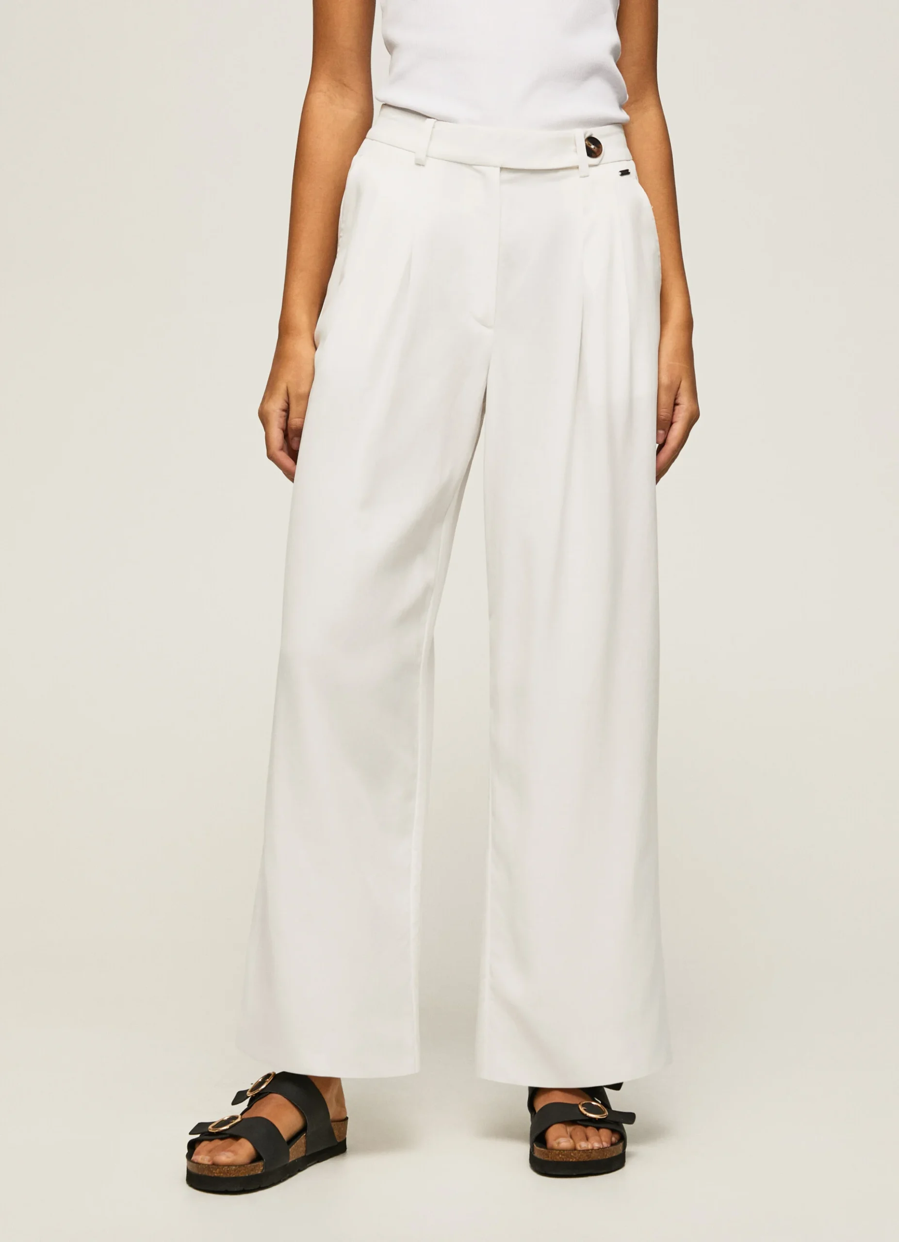 PEPE JEANS WOMANS PANTS WIDE PLEATED WHITE