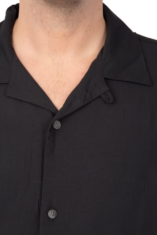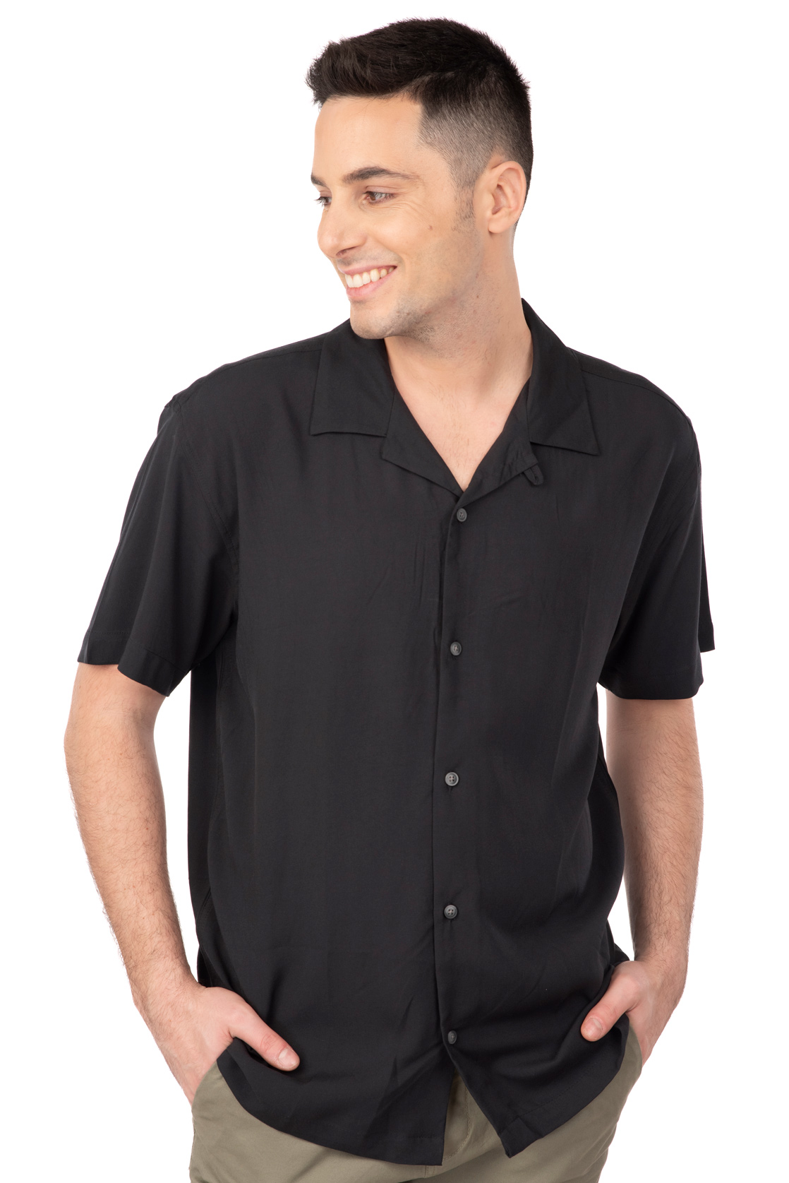 REBASE MENS SHIRT BYRON TOTAL BLACK SHORT SLEEVES VISCOSE