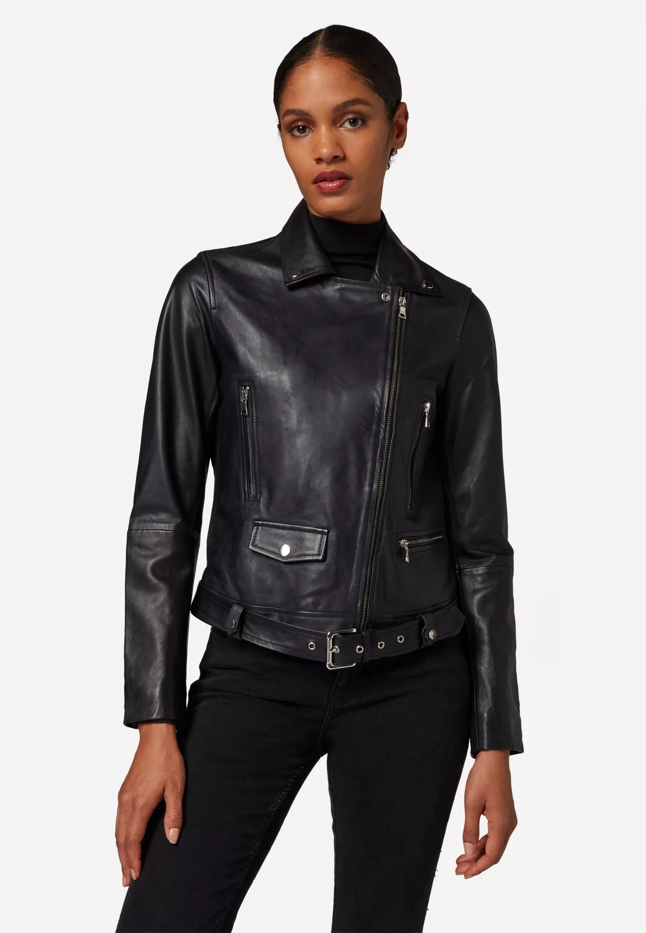 Με το λοξό μπροστινό φερμουάρ του, το δερμάτινο μπουφάν Venla προσελκύει την προσοχή όλων και σας δίνει μια μοντέρνα και κομψή εμφάνιση. Το μαύρο χρώμα δίνει στο σακάκι μια διαχρονική κομψότητα που ταιριάζει τέλεια σε κάθε γκαρνταρόμπα. Είναι διαθέσιμο σε μεγέθη XS έως 3XL, οπότε σίγουρα θα βρείτε το κατάλληλο μέγεθος για εσάς.