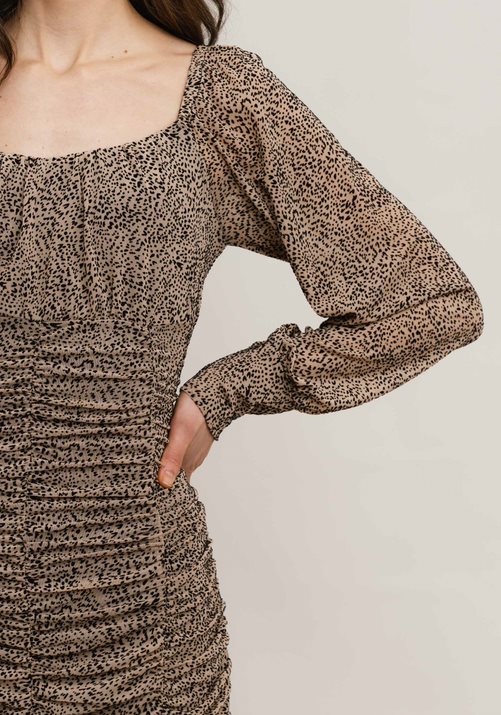 RUT&CIRCLE WOMANS DRESS PAULINA BEIGE/BLACK DOT