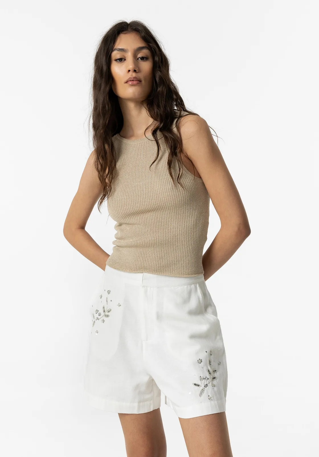 • Τοπ με V λαιμόκοψη και τιράντες. Εφαρμογή μεταλλικού νήματος.