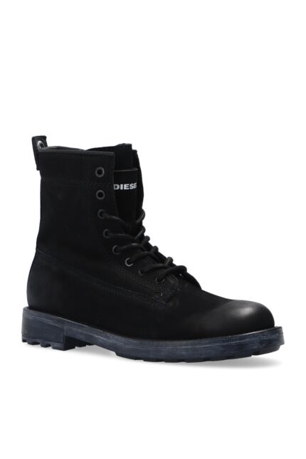 • These combat boots are made from washed oily nubuck leather with a contrasting lining. The rubber sole is detailed on the back with Diesel lettering.