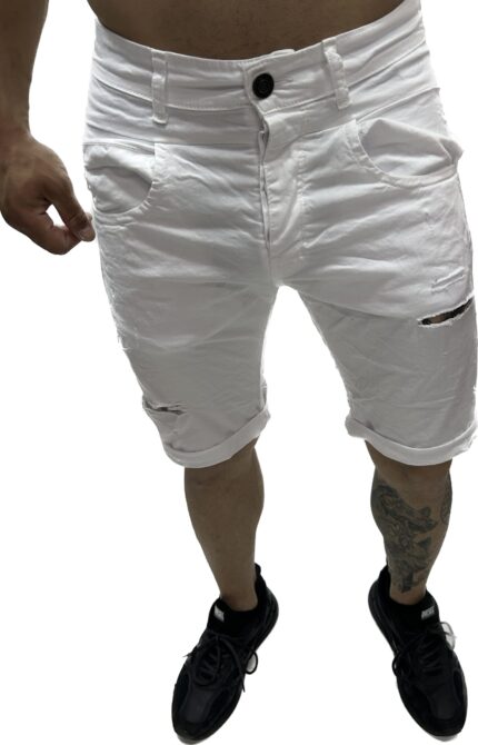 BACK2JEANS MENS DENIM SHORTS WHITE